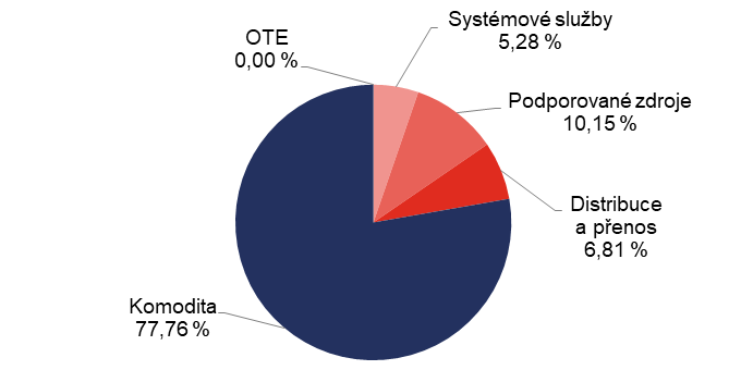 - Příspěvek na podporu elektřiny z podporovaných zdrojů energie (POZE), která kryje náklady vyvolané provozní podporou pro POZE. POZE jsou dotované ze zákona.