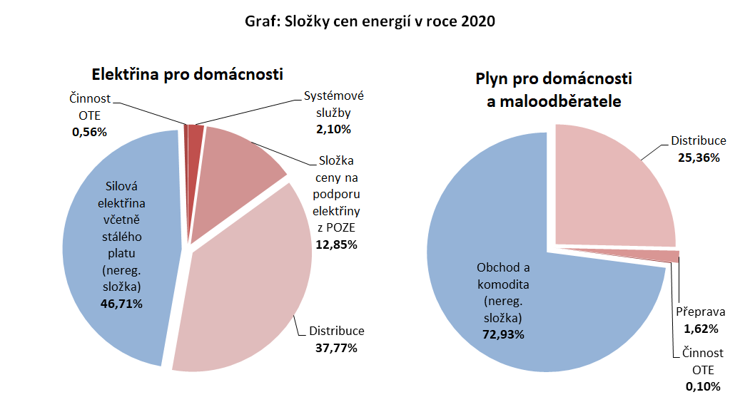 Průměrné nárůsty regulovaných složek cen energií pro rok 2020 se pohybují pod úrovní inflace u elektřiny i u plynu. Především u elektřiny by tak regulovaná složka ceny měla zmírnit dopady očekávaného růstu neregulované složky, kterou stanovují dodavatelé prostřednictvím svých ceníků. V případě domácností regulovaná složka ceny mírně přesahuje 53 % z výsledné ceny, do ceny plynu se promítá přibližně 27 %.