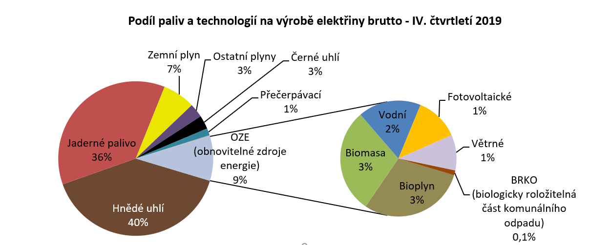 Výroba elektřiny v posledním čtvrtletí roku 2019 dosáhla 23,7 TWh (brutto), což představuje meziroční propad o 1,3 %. Největším dílem přispěly k poklesu parní elektrárny, jejichž produkce meziročně klesla o 9,9 %. Výrazně více energie naopak vyráběly paroplynové elektrárny (+23 %), znatelně si polepšily také malé a velké vodní elektrárny (+32 %) či větrné elektrárny (+4,5 %). U posledních jmenovaných za zvýšením produkce stál především nárůst instalovaného výkonu (+7,3 %).